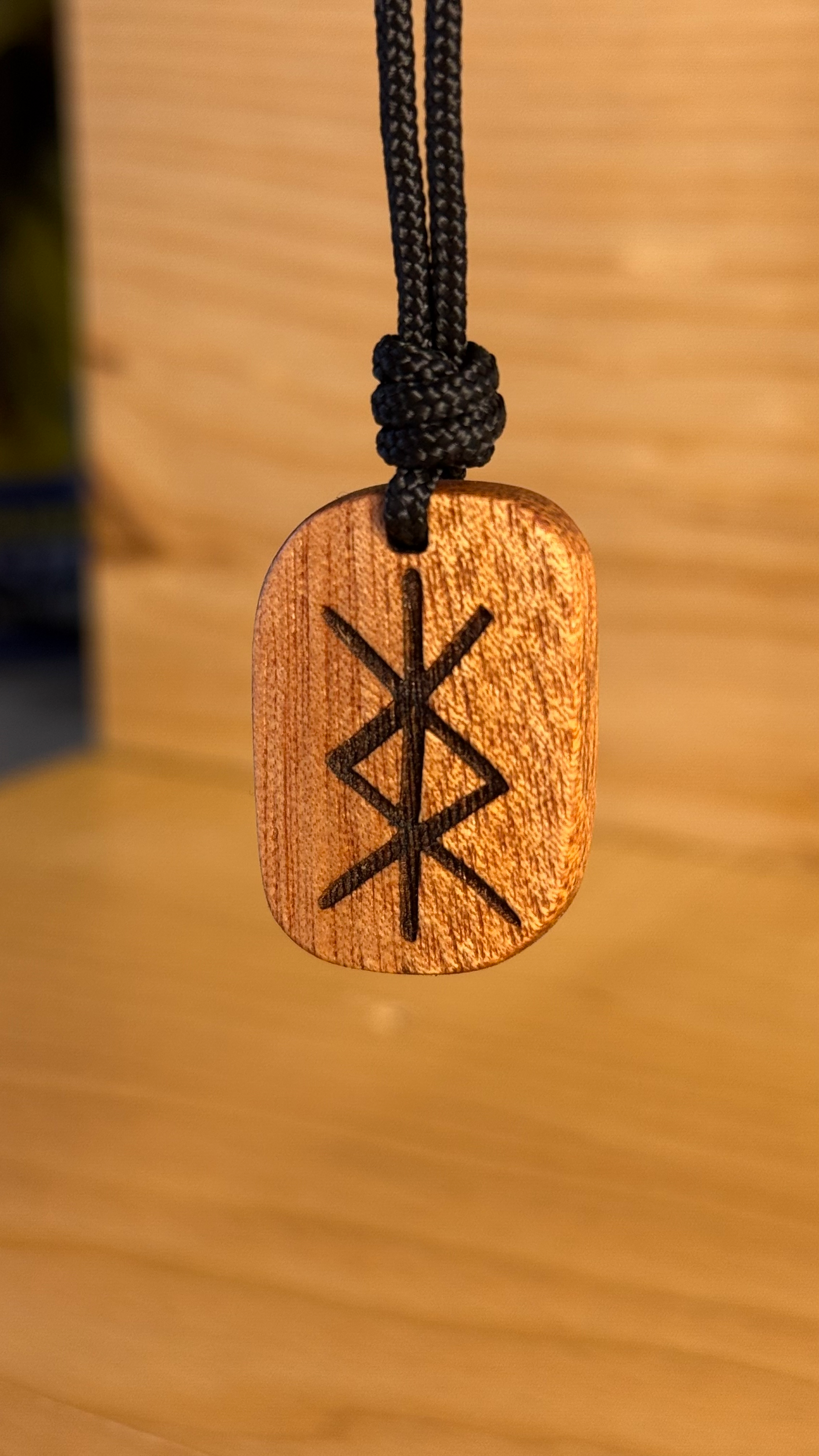 Incisa con la Bindruna di Protezione, questa creazione nasce dall’unione di due rune fondamentali: Algiz (ᛉ), simbolo di scudo spirituale e connessione divina, e Othala (ᛟ), runa delle radici, della famiglia e della casa. La loro fusione genera un sigillo dal potente valore protettivo, capace di difendere sia la persona che i suoi legami più intimi, creando intorno a chi lo indossa un’aura di stabilità e sicurezza.