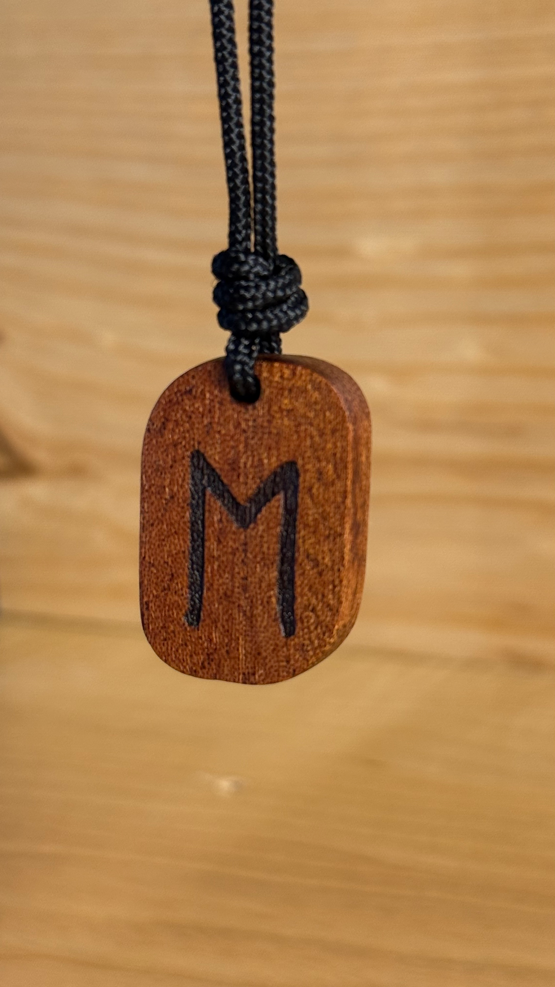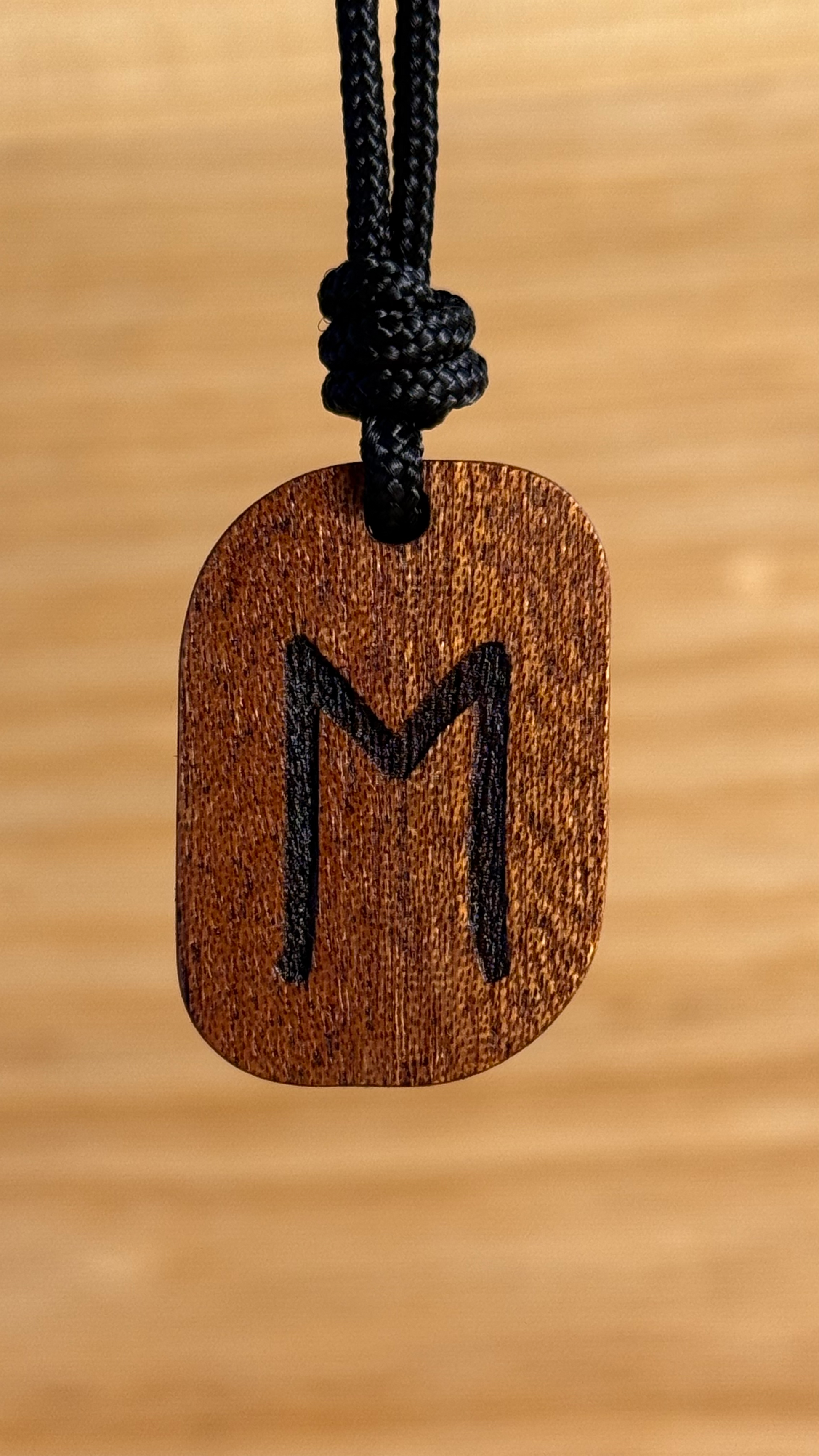 Realizzato a mano in legno di Mogano proveniente dalla liuteria, ogni amuleto è unico, inciso a laser e rifinito con olio naturale. La forma compatta (32×22 mm) lo rende ideale come talismano quotidiano, da indossare come richiamo alla fiducia e al progresso o da regalare come augurio di alleanza e crescita condivisa.