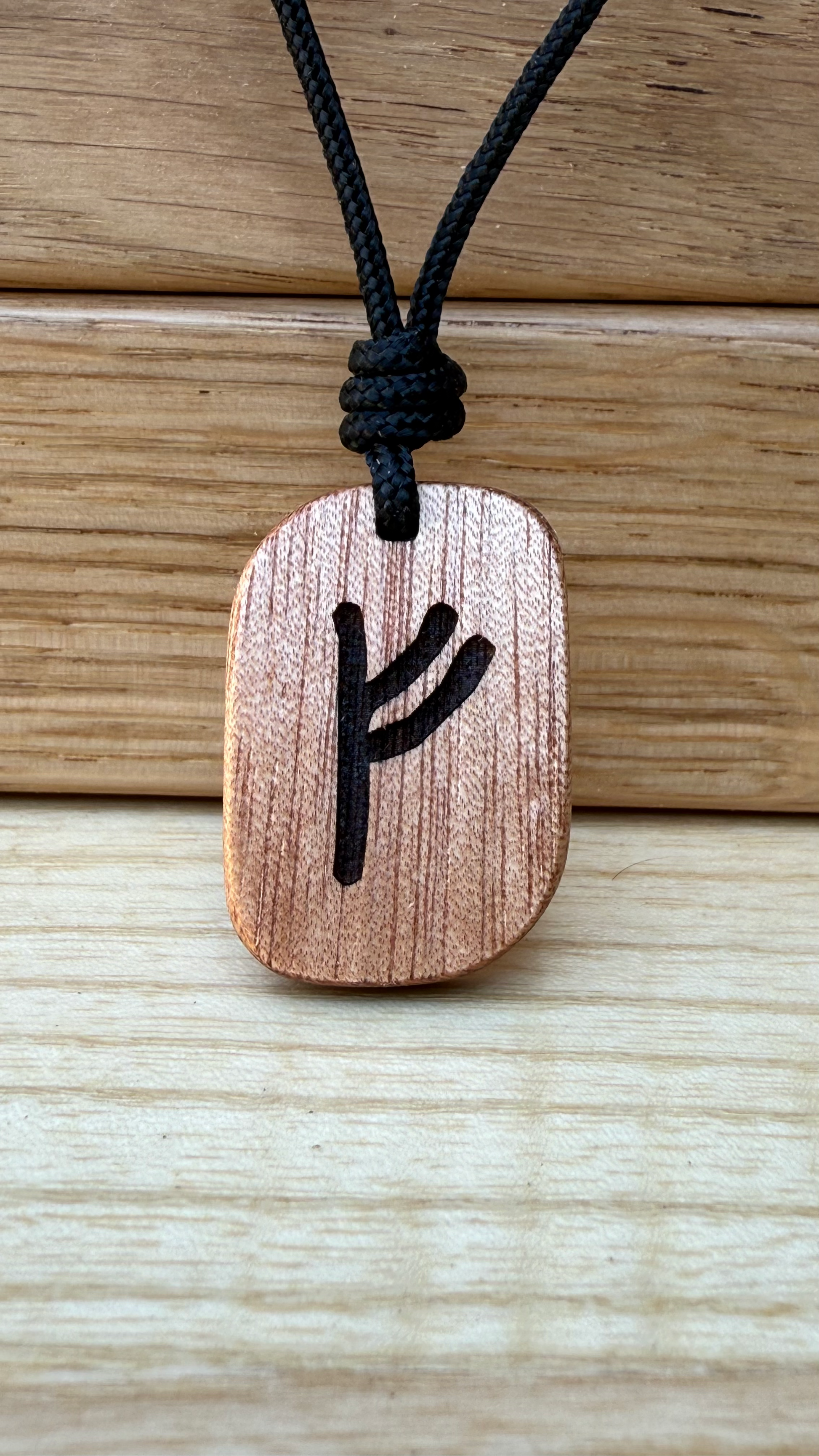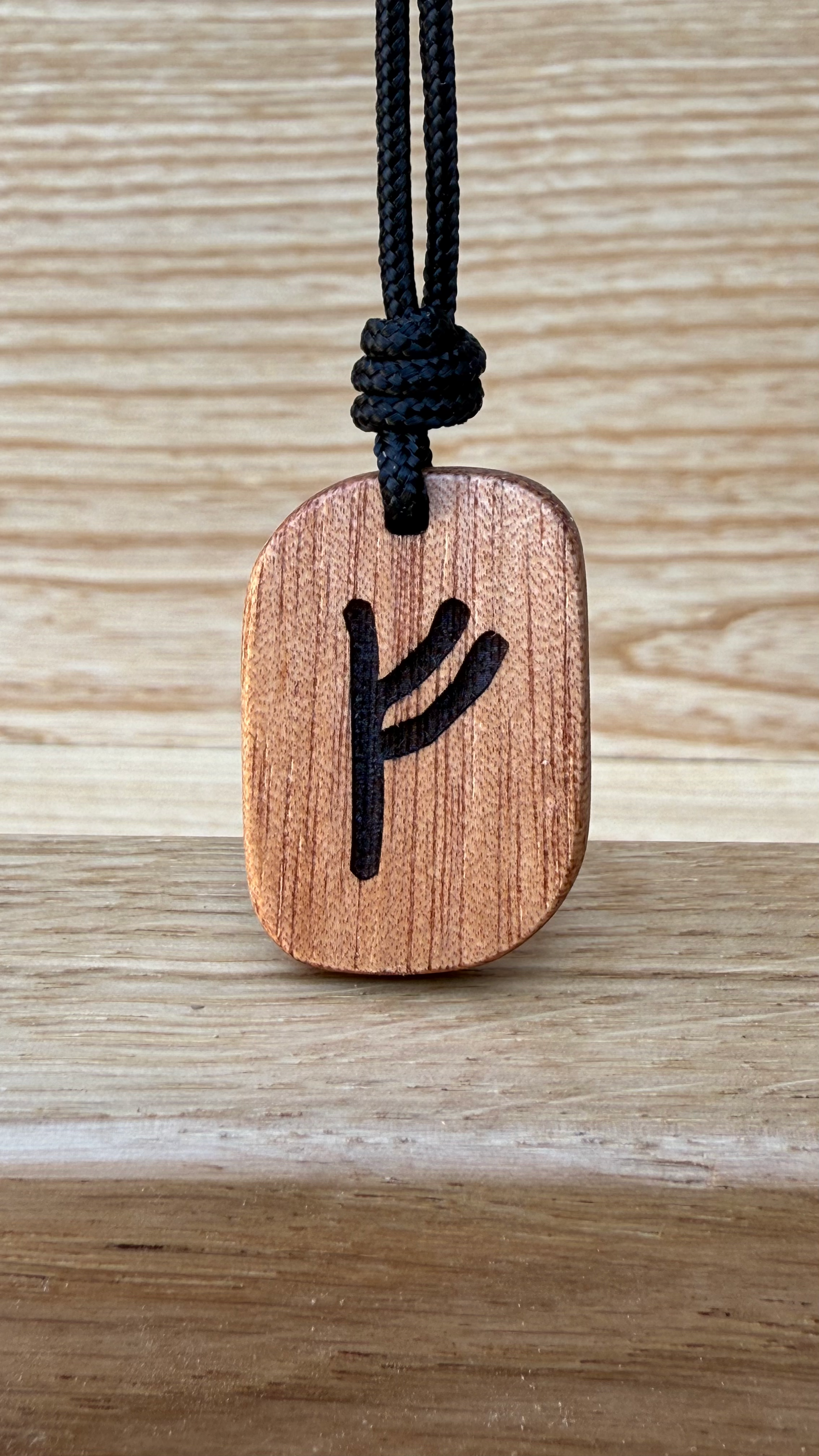 Realizzato a mano in legno di Okoumè proveniente dalla liuteria, ogni amuleto è unico, inciso a laser e rifinito con olio naturale. La forma compatta (32x22 mm) lo rende ideale come talismano quotidiano, da indossare con intenzione o regalare come segno di buon auspicio.
