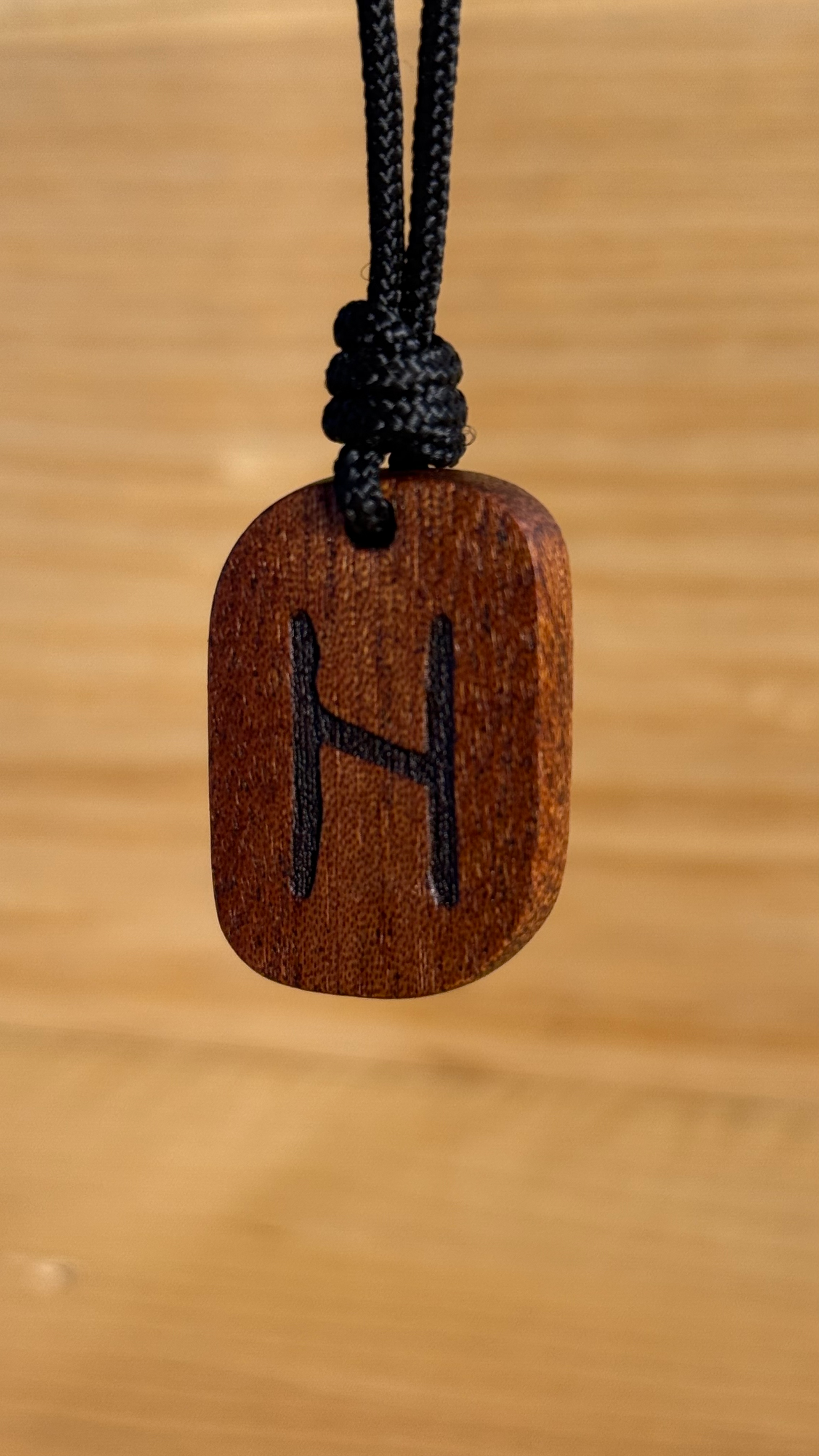 Realizzato a mano in legno di Mogano proveniente dalla liuteria, ogni amuleto è unico, inciso a laser e rifinito con olio naturale. La forma compatta (32×22 mm) lo rende ideale come talismano quotidiano, da indossare come guida nei momenti di cambiamento o da donare come augurio di resilienza.