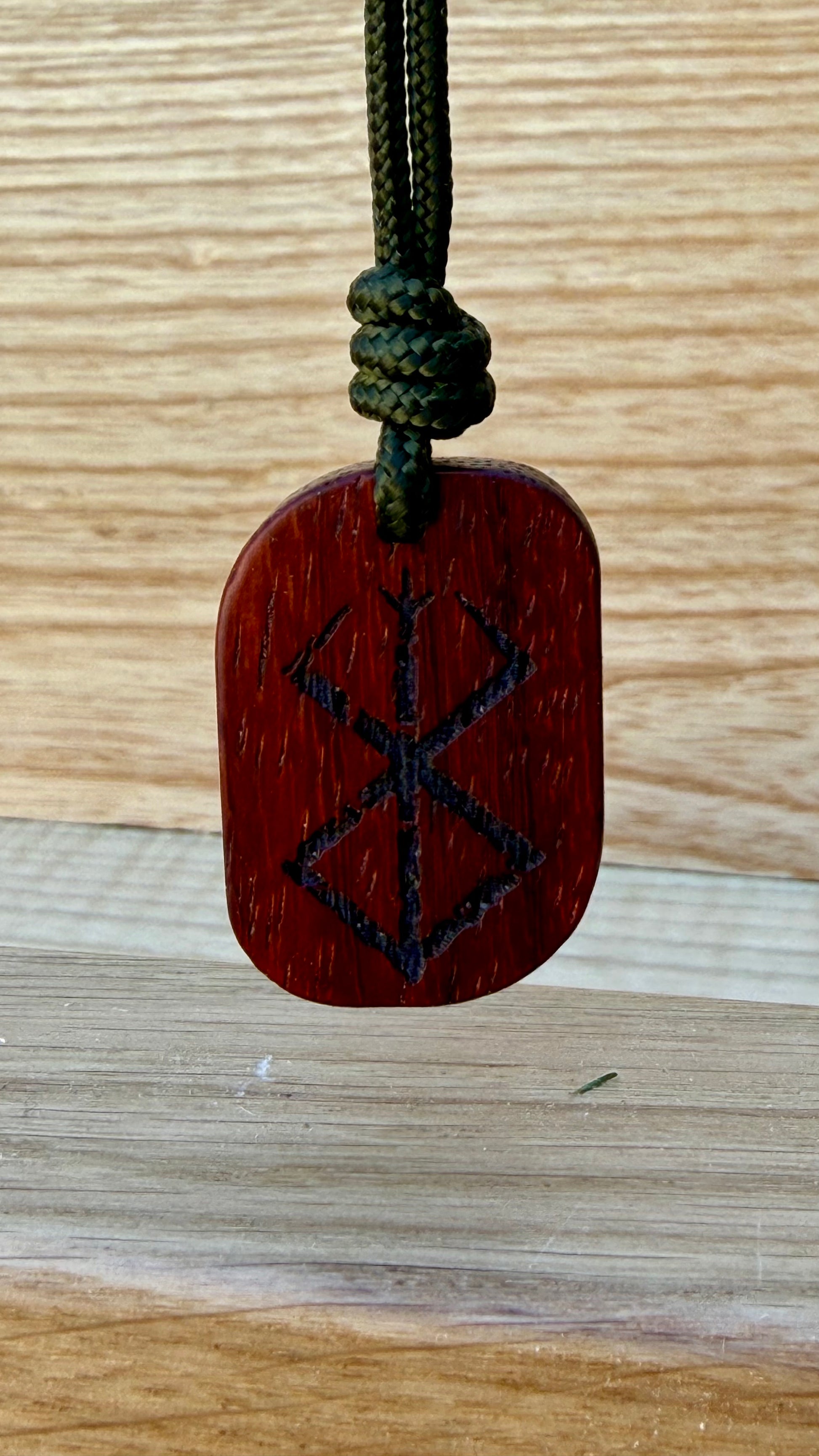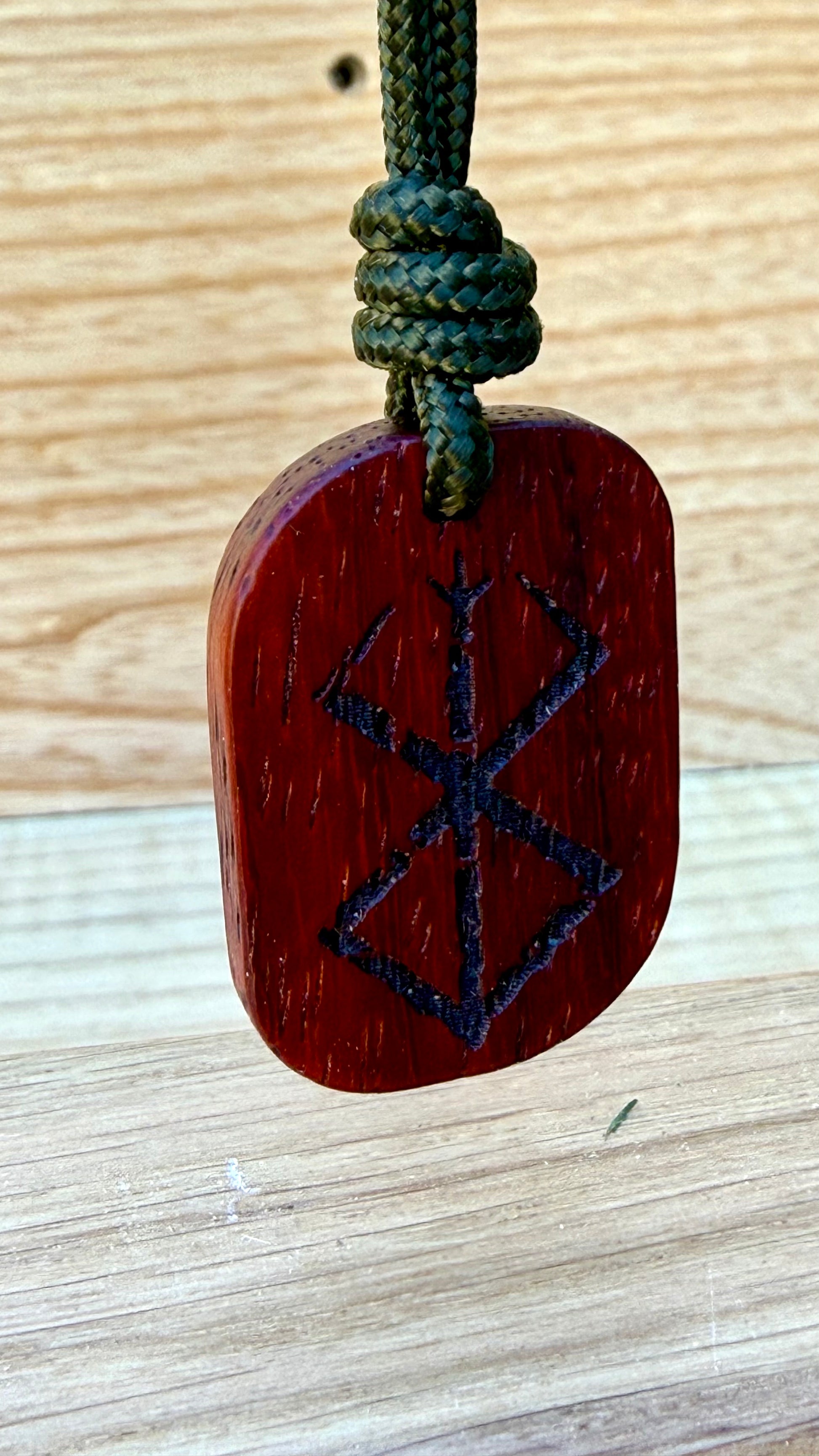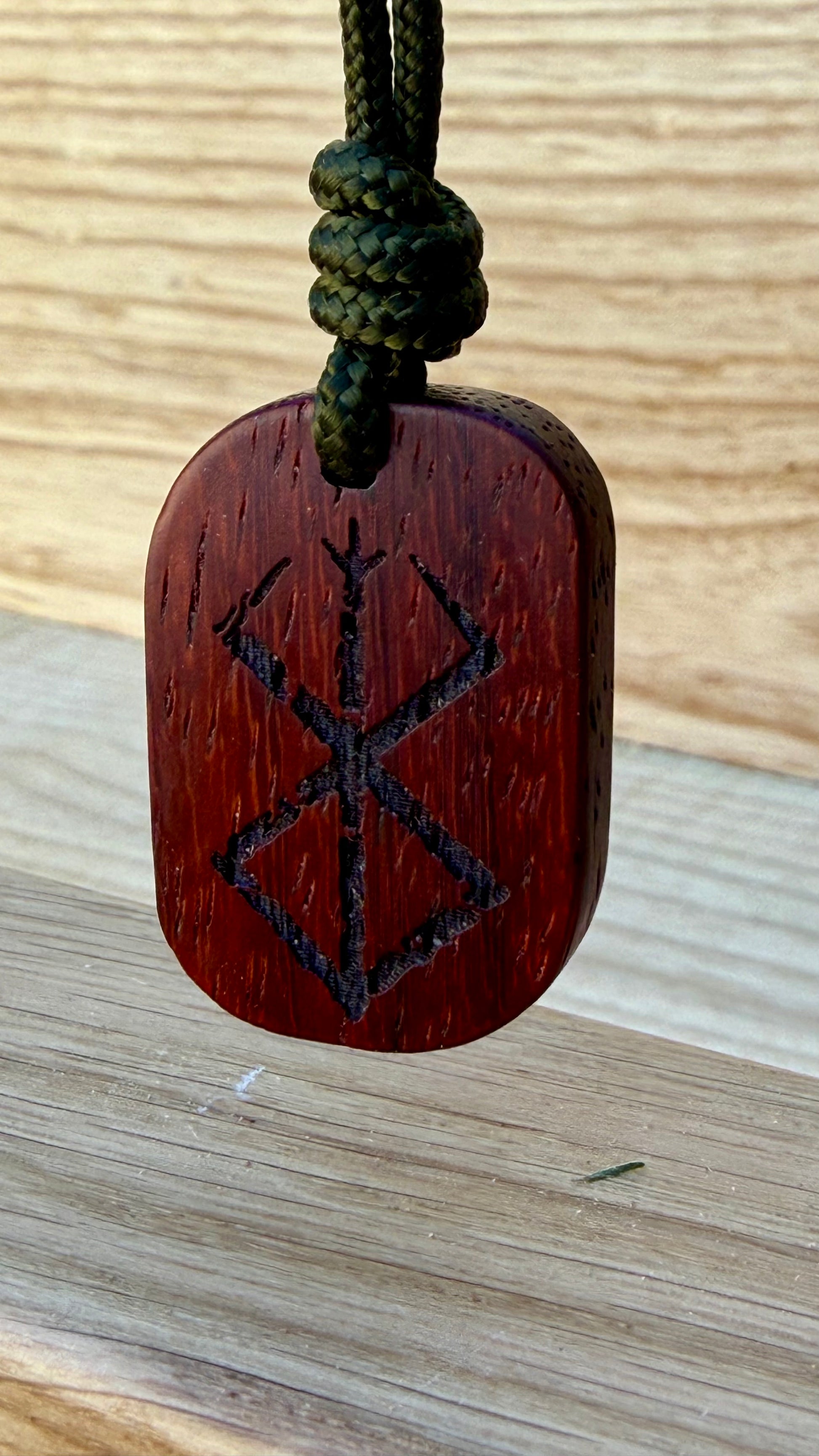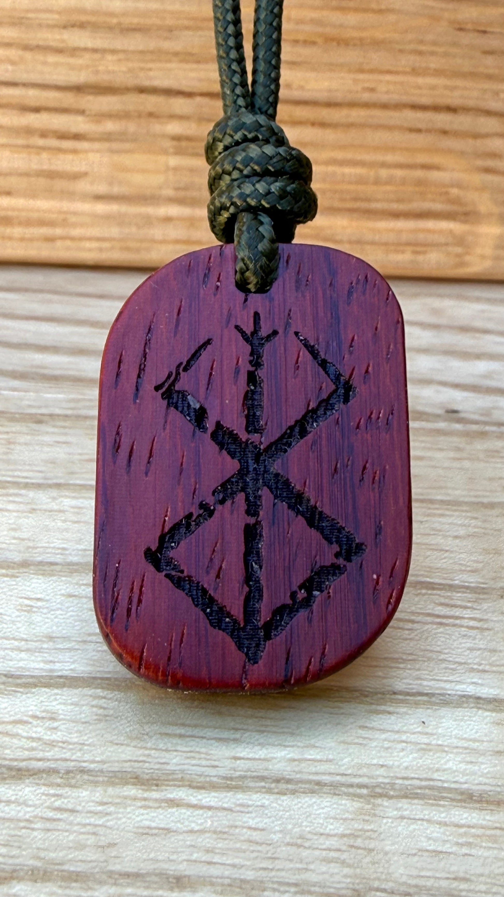 Il Marchio del Sacrificio, inciso su pregiato legno di Padauk, con la sua colorazione intensa e profonda, rende unico questo ciondolo (32×22 mm).