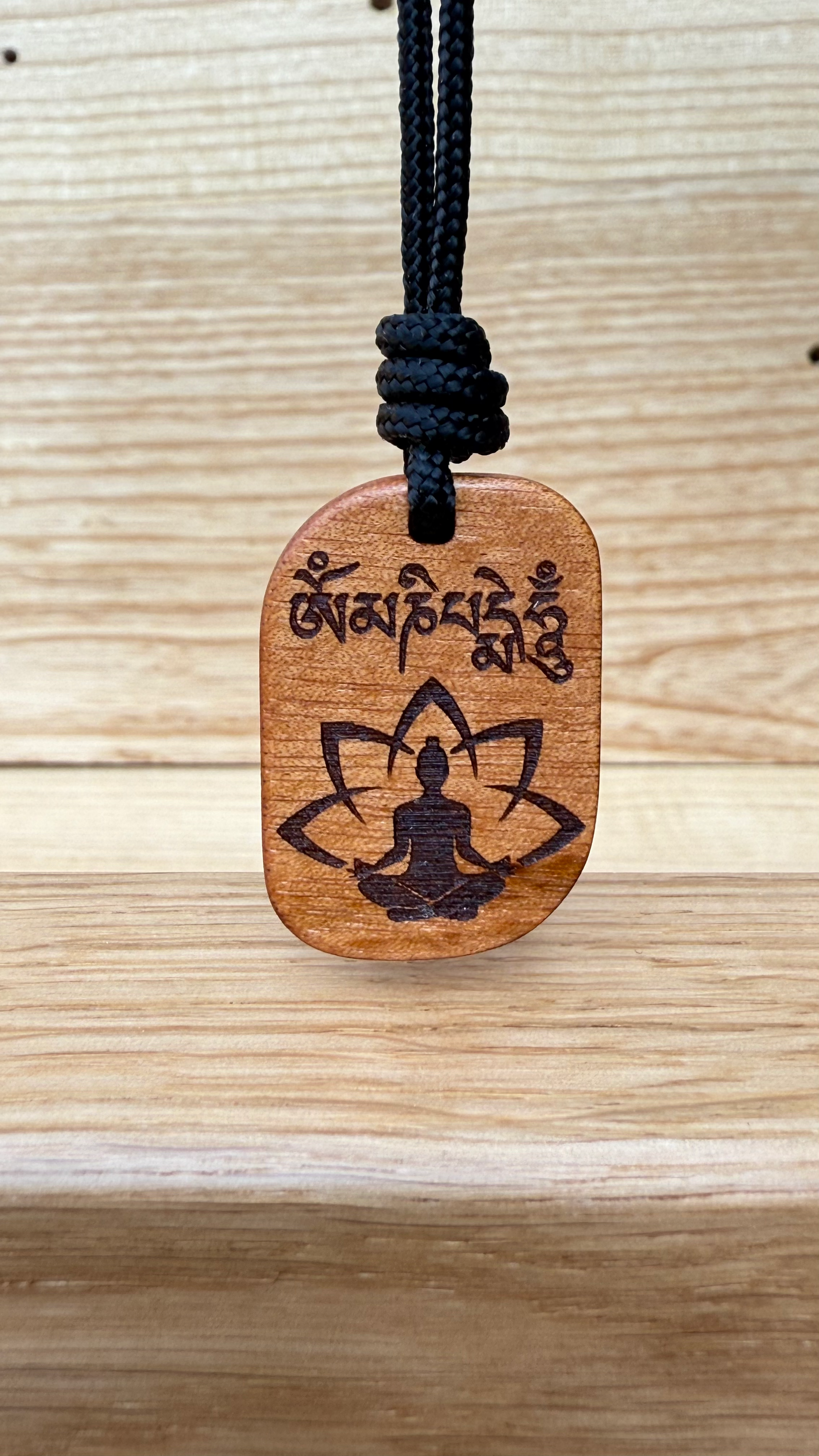 Amuleto da meditazione con simbolo Loto e incisione "Om Mani Padre Hum", mantra buddista tibetano molto potente, spesso tradotto come "O gioiello nel fiore di loto". Non ha una traduzione letterale univoca, ma simboleggia la compassione, la saggezza e la trasformazione interiore.