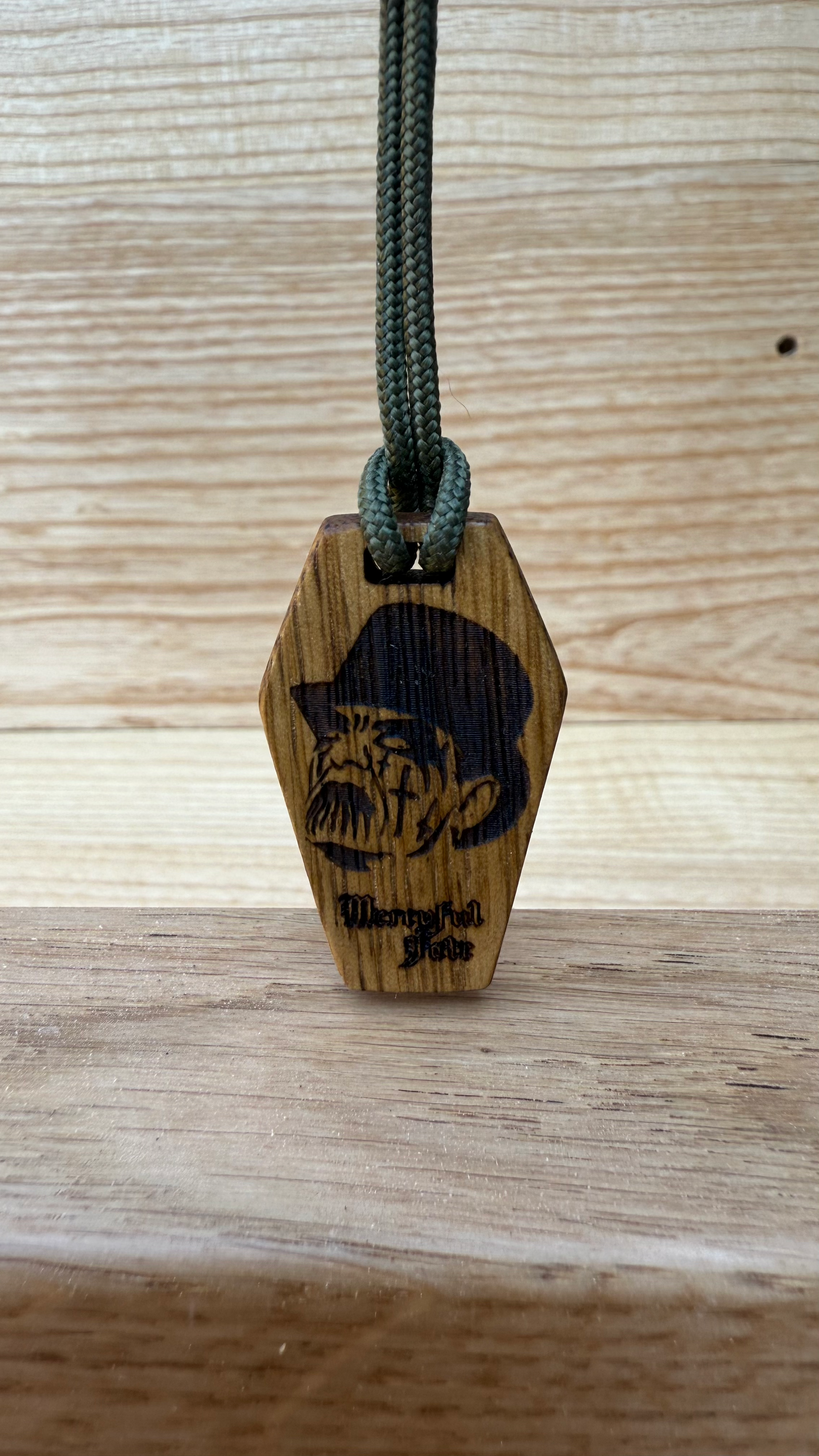 Questo ciondolo è realizzato in splendido Korina Wood ed è disponibile anche in versione portachiavi. Il laccio regolabile è in paracord e la dimensione del ciondolo è di 24mm x 40mm