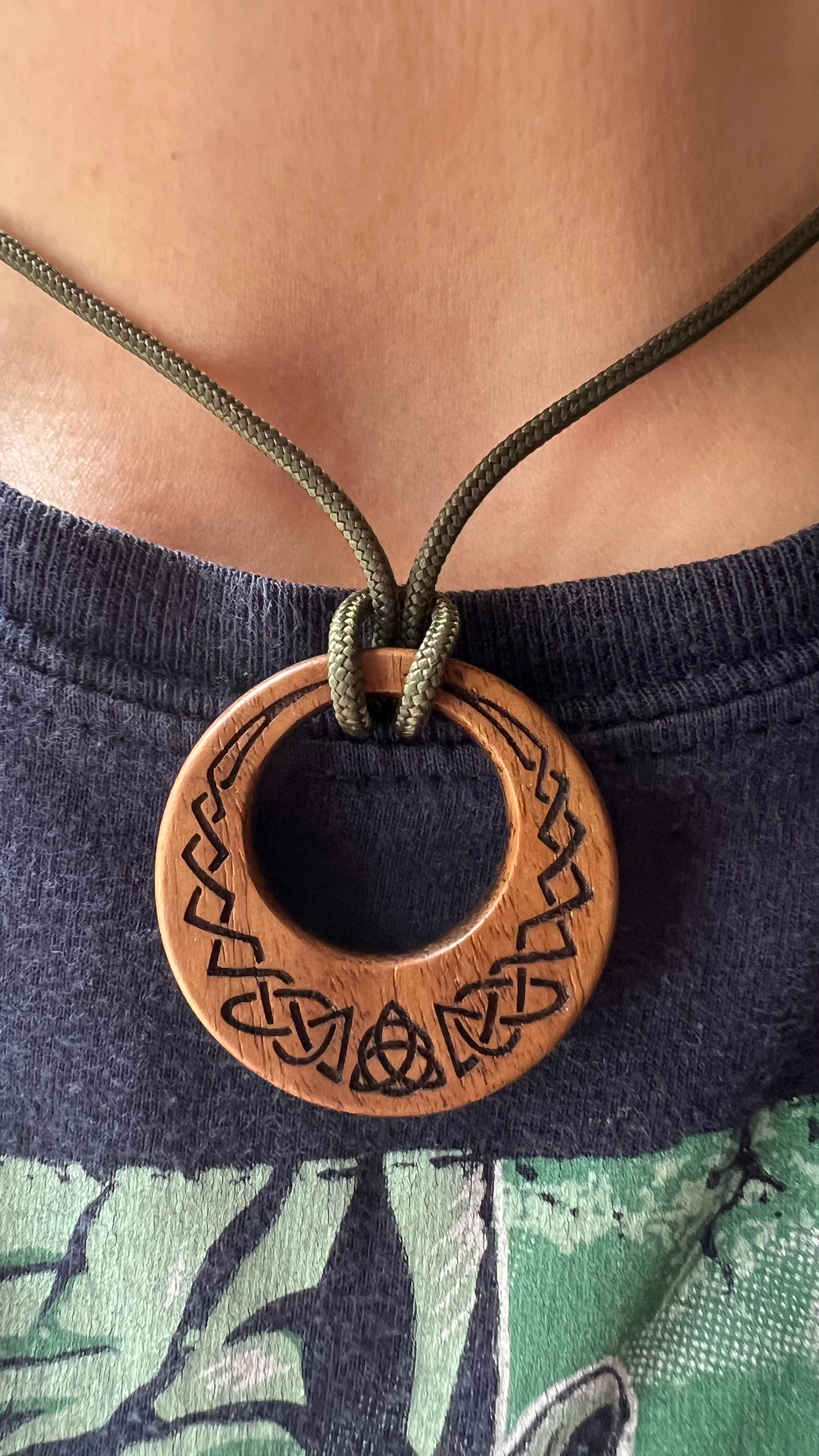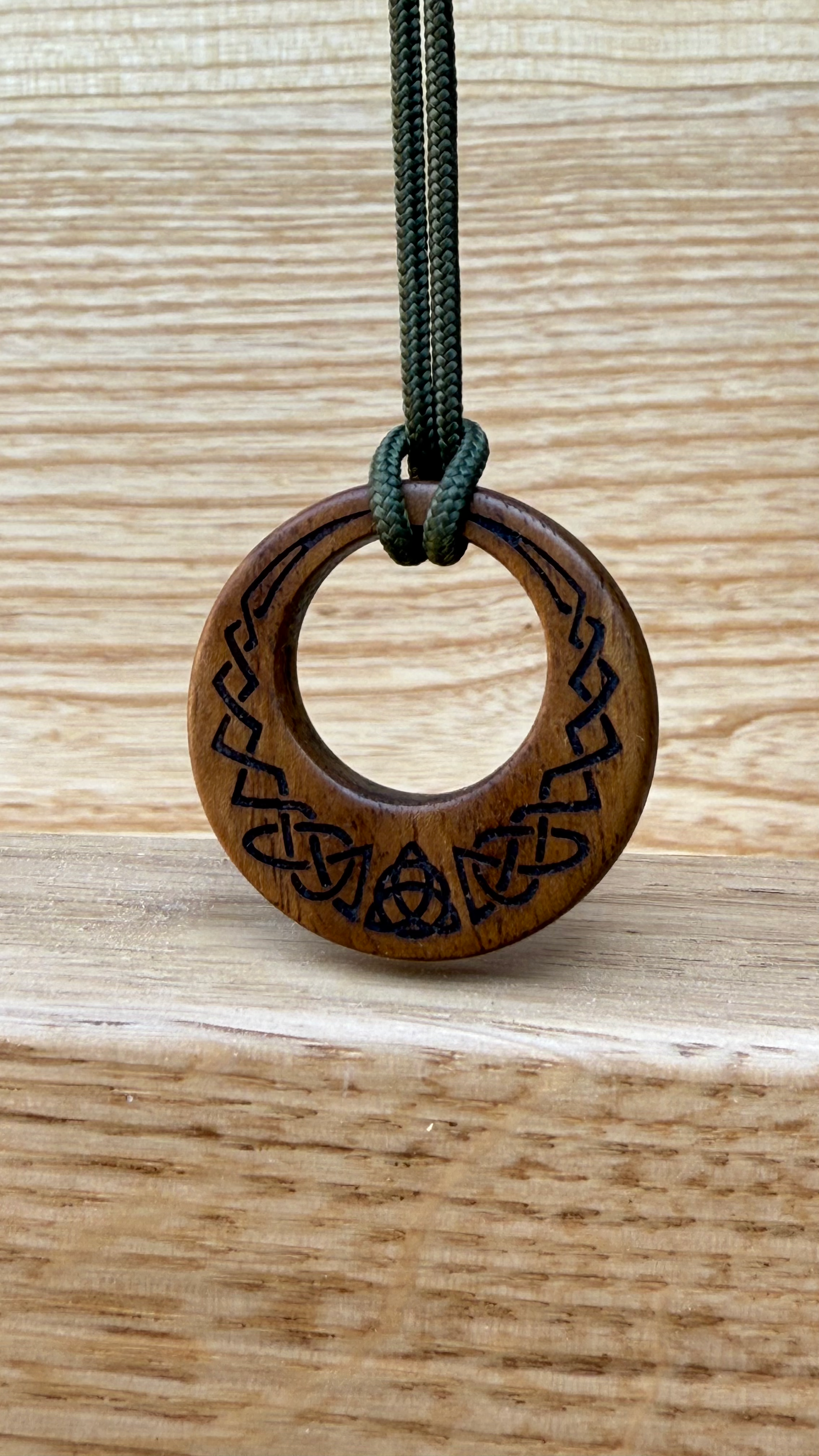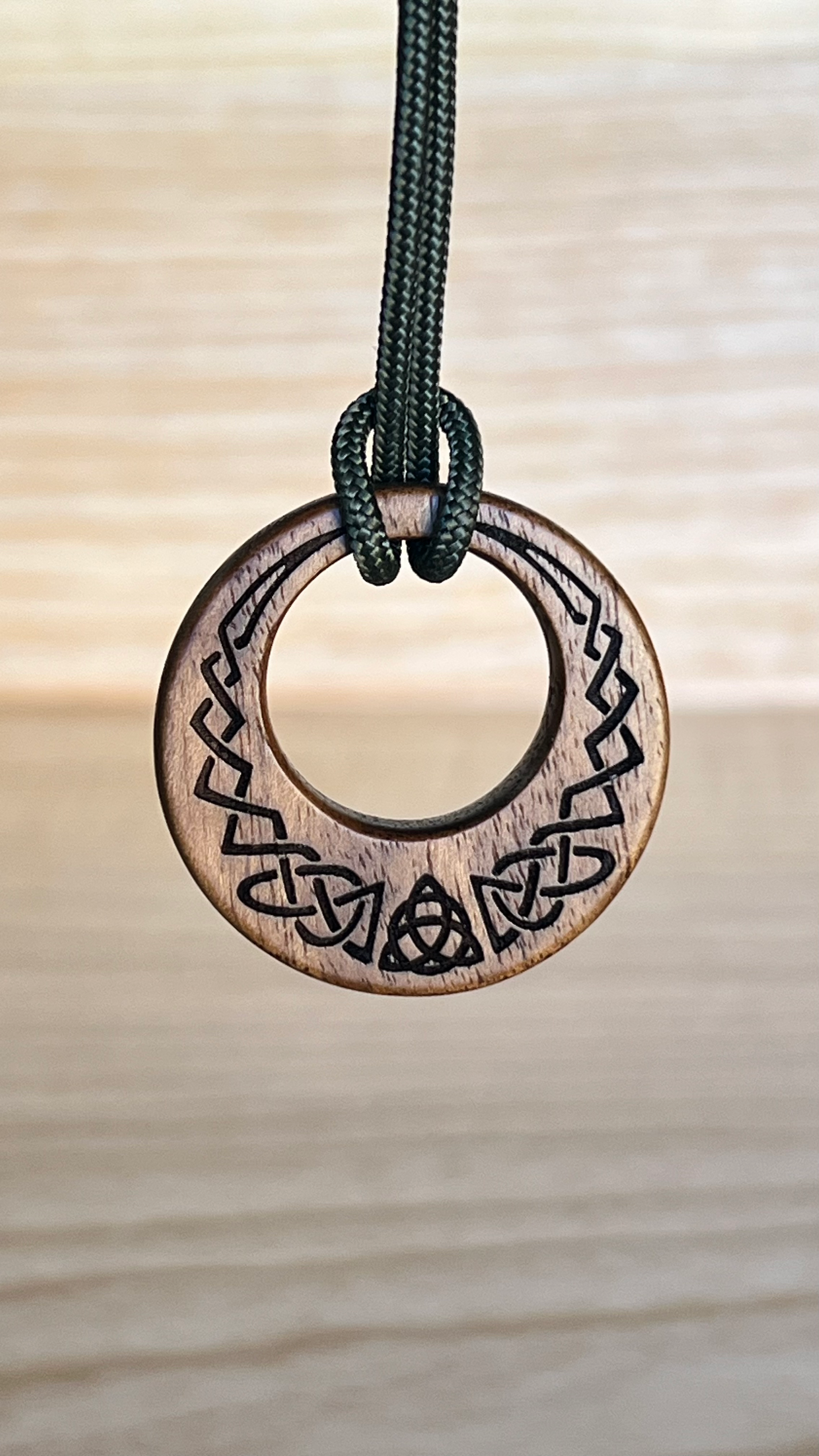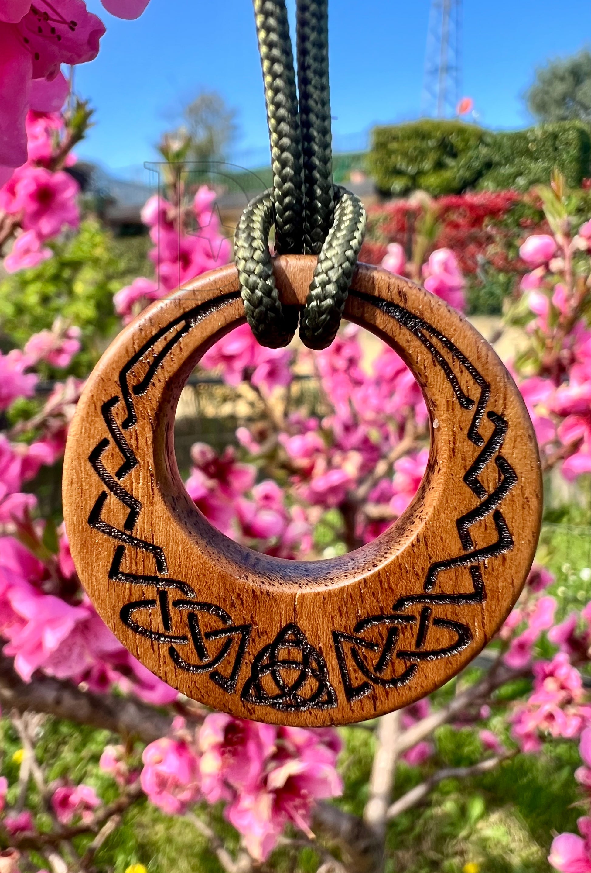 Luna celtica in Walnut wood, con triquetra incisa a laser