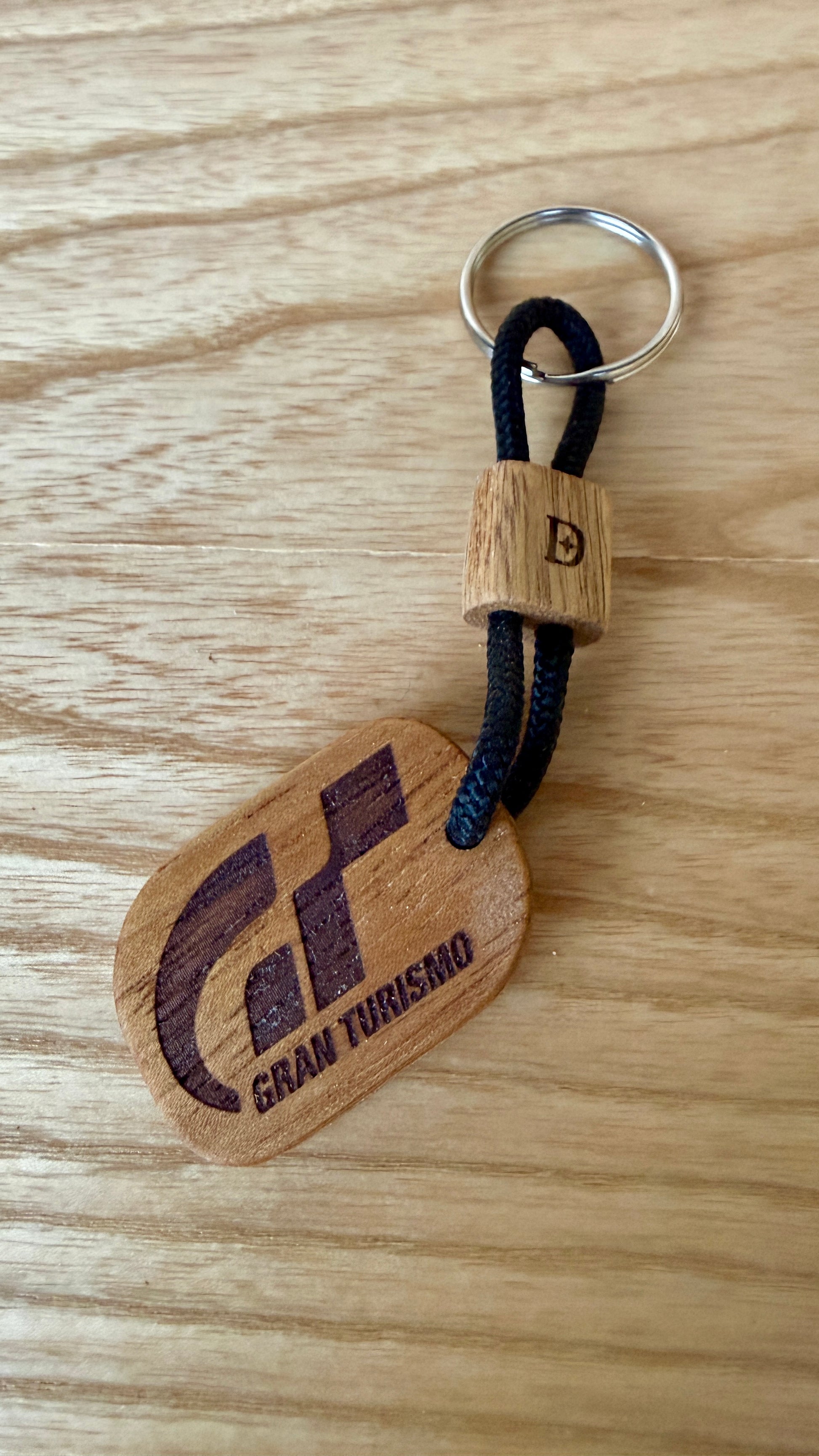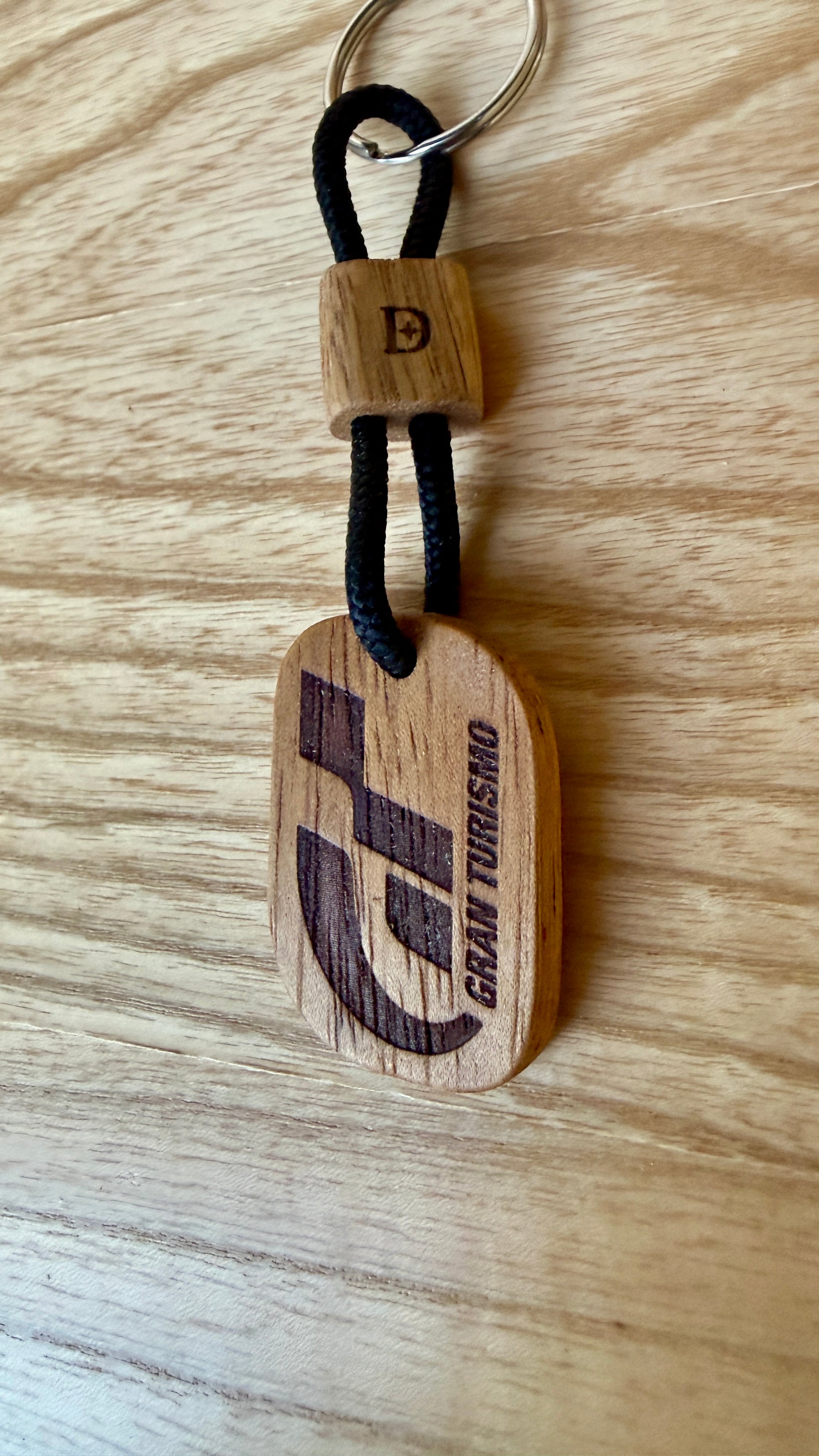Handcrafted from mahogany wood and engraved with the iconic Gran Turismo logo, this keychain blends racing passion with warm, artisanal design.