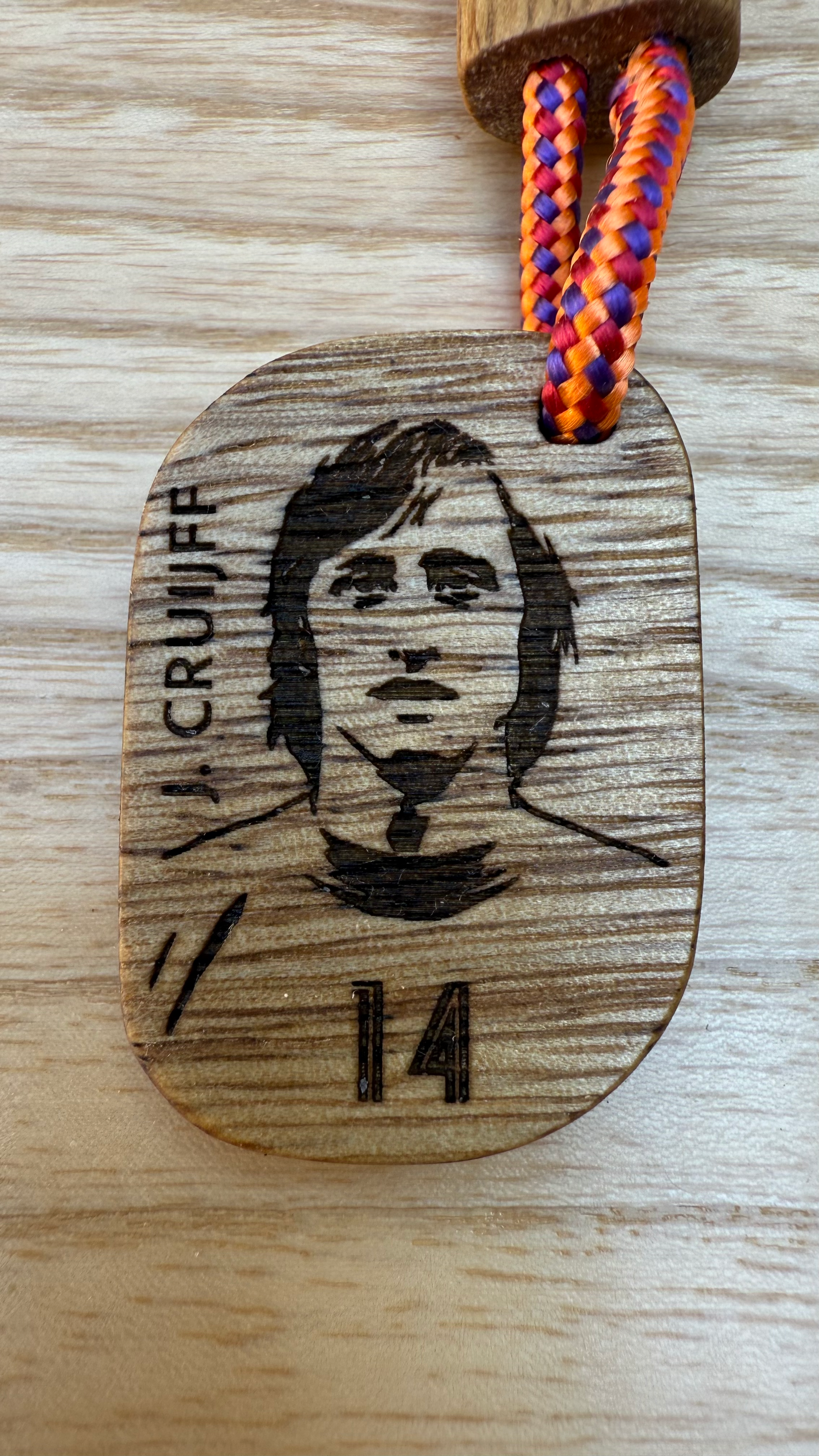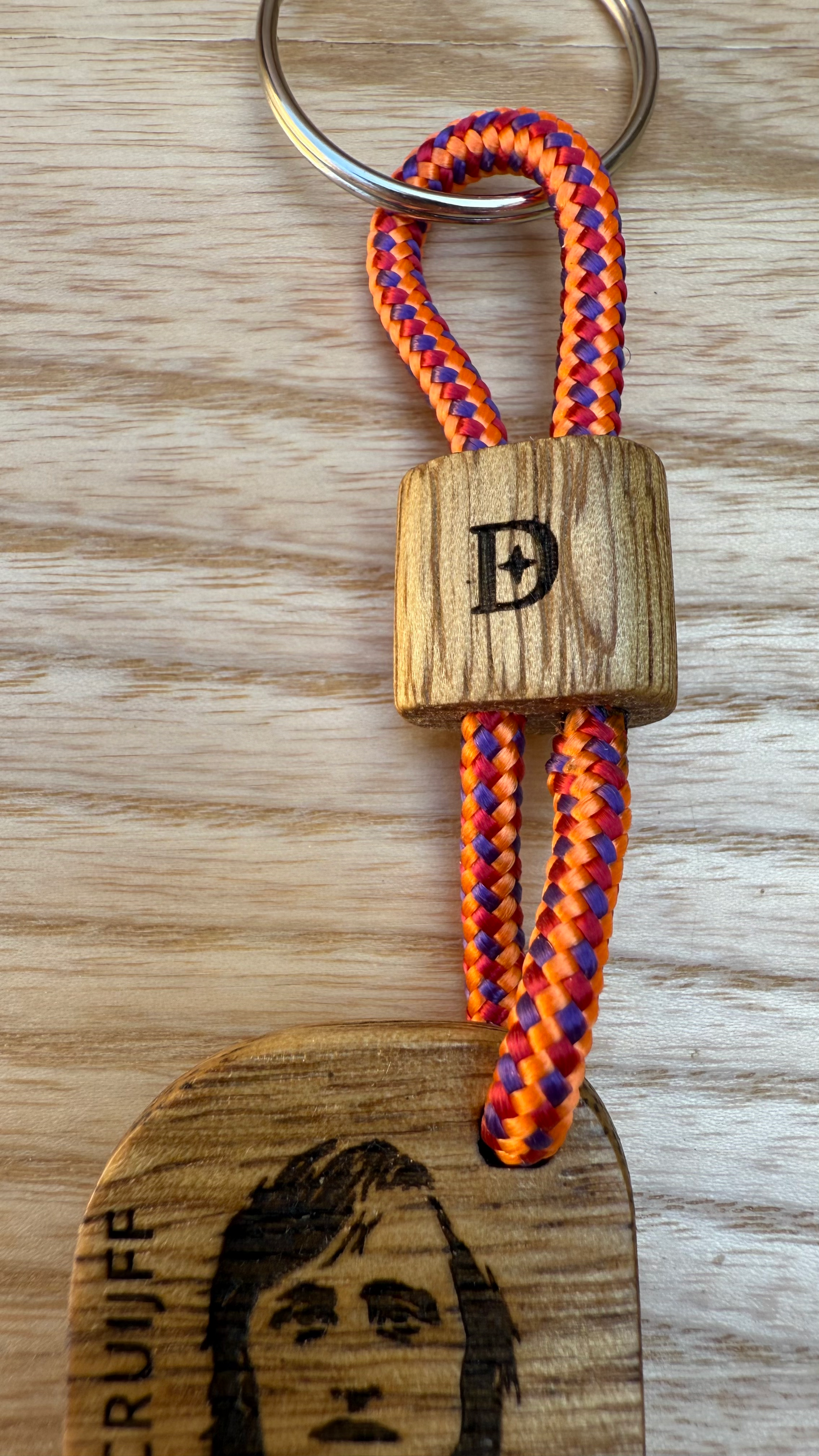 Questo portachiavi inciso celebra il suo profilo iconico con una silhouette in stile stencil, realizzata su legno di Korina e rifinita interamente a mano.