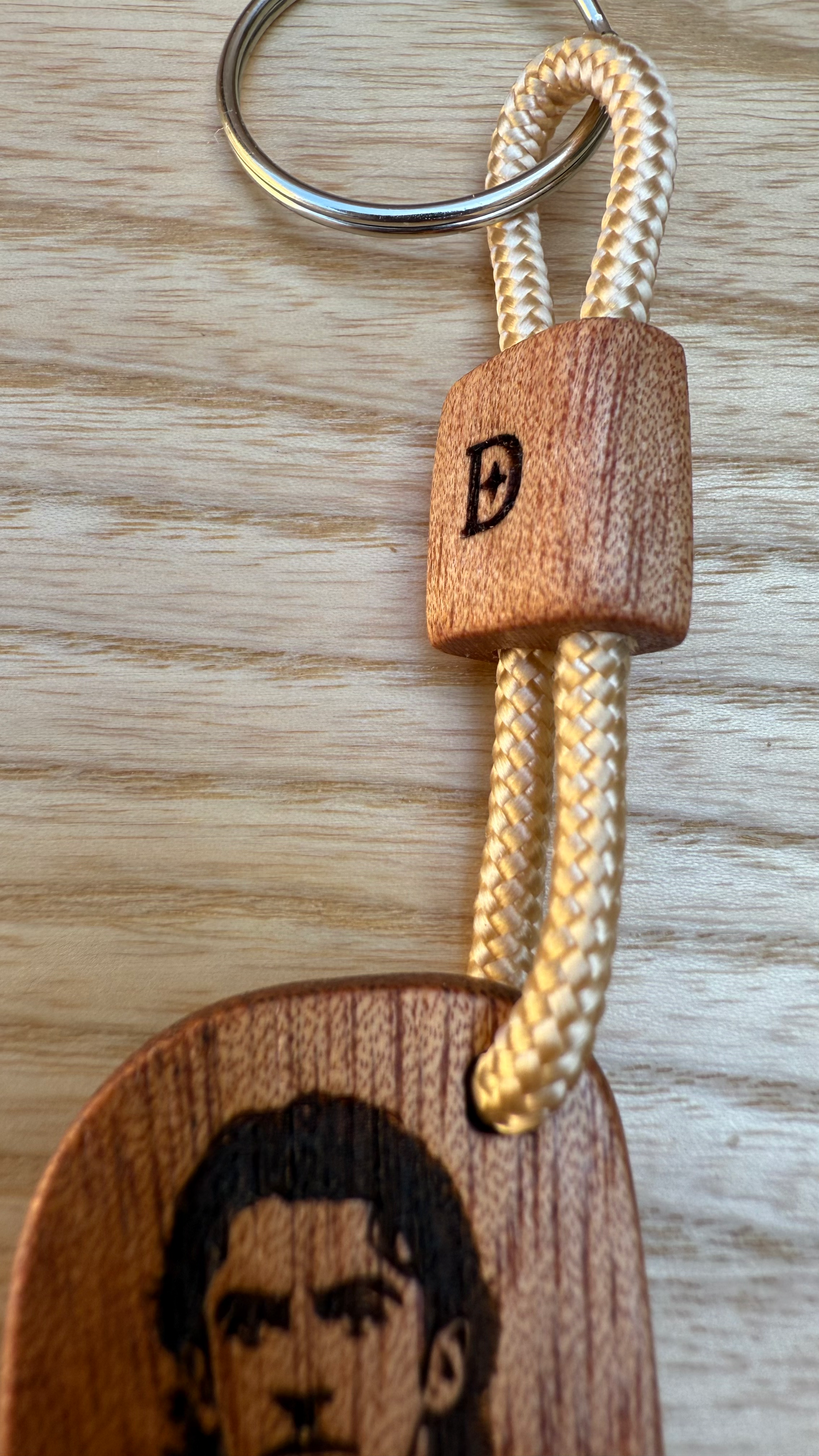 Questo portachiavi inciso celebra il suo profilo iconico con una silhouette in stile stencil, realizzata su legno di Okoumè e rifinita completamente a mano.