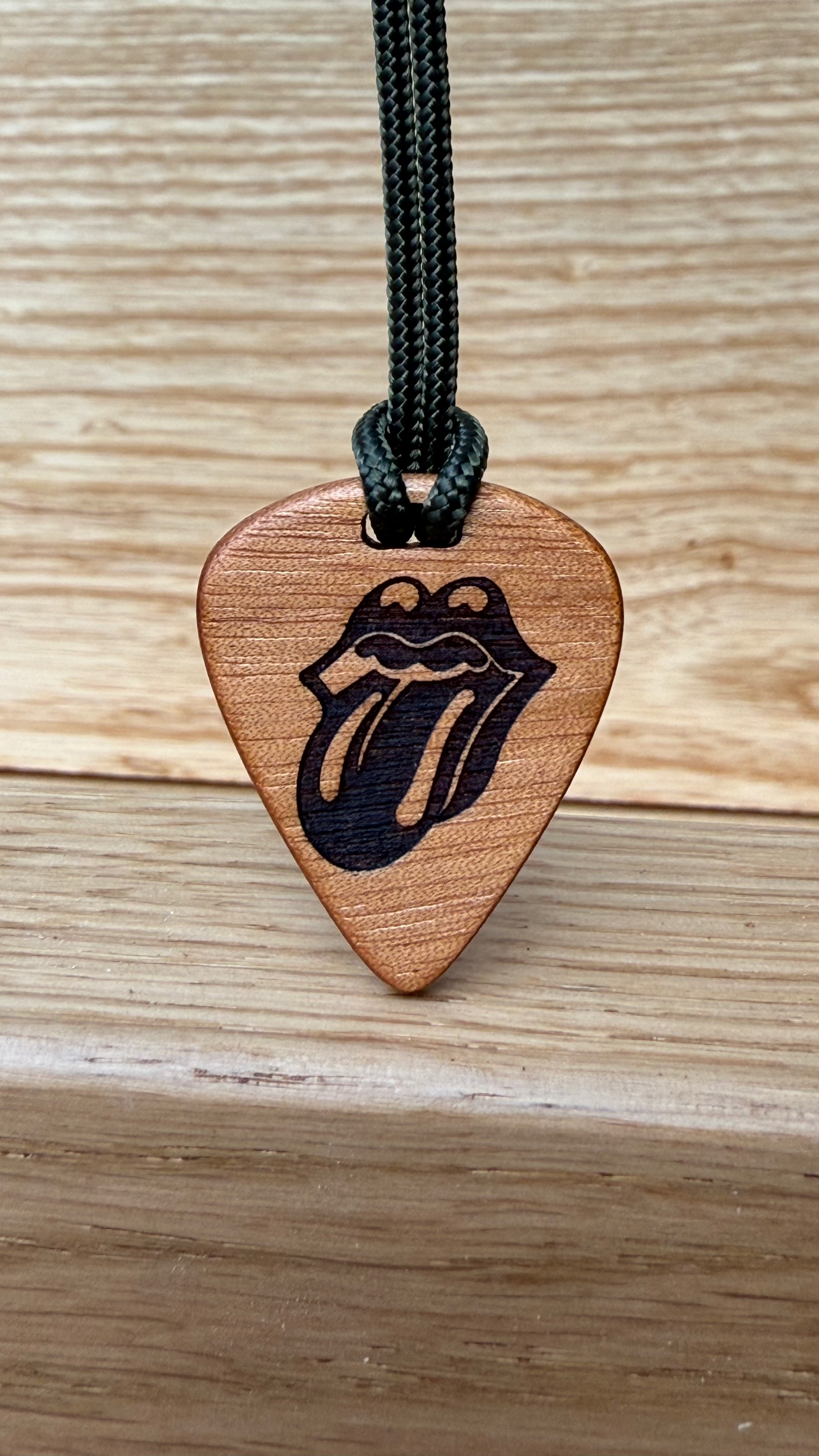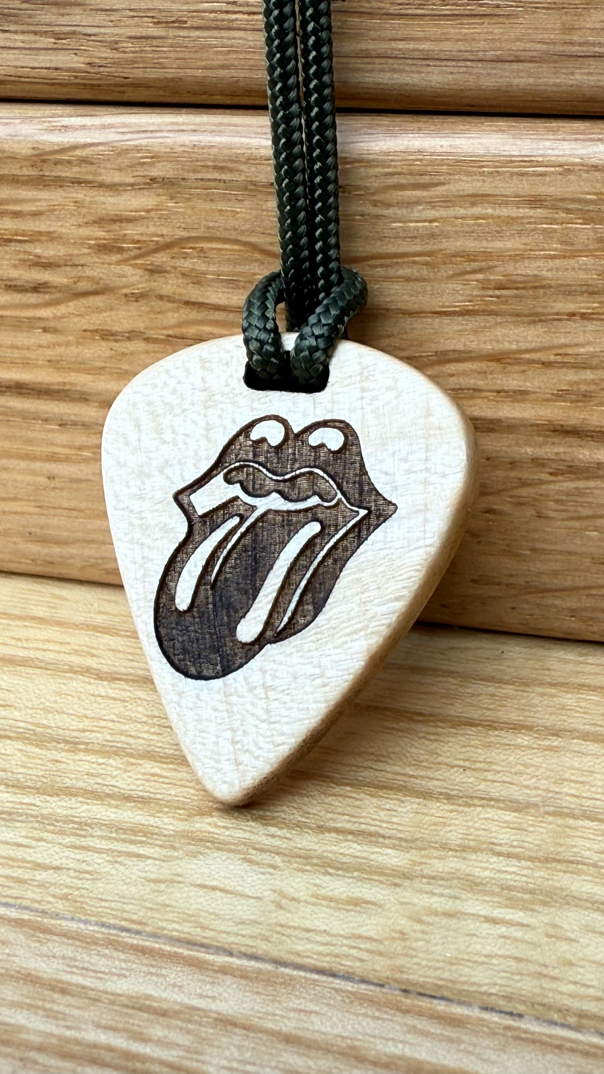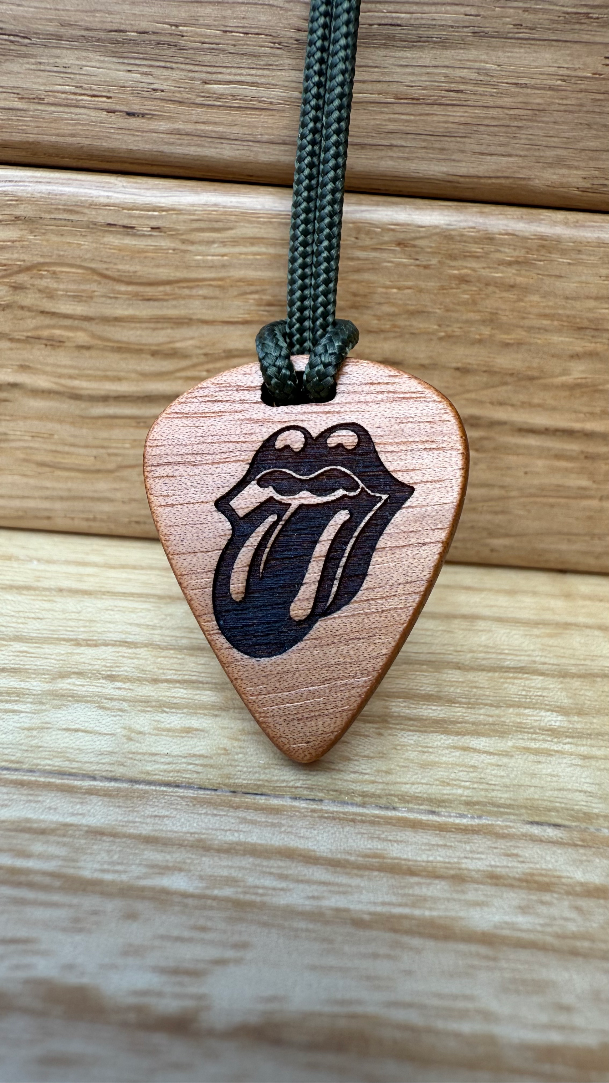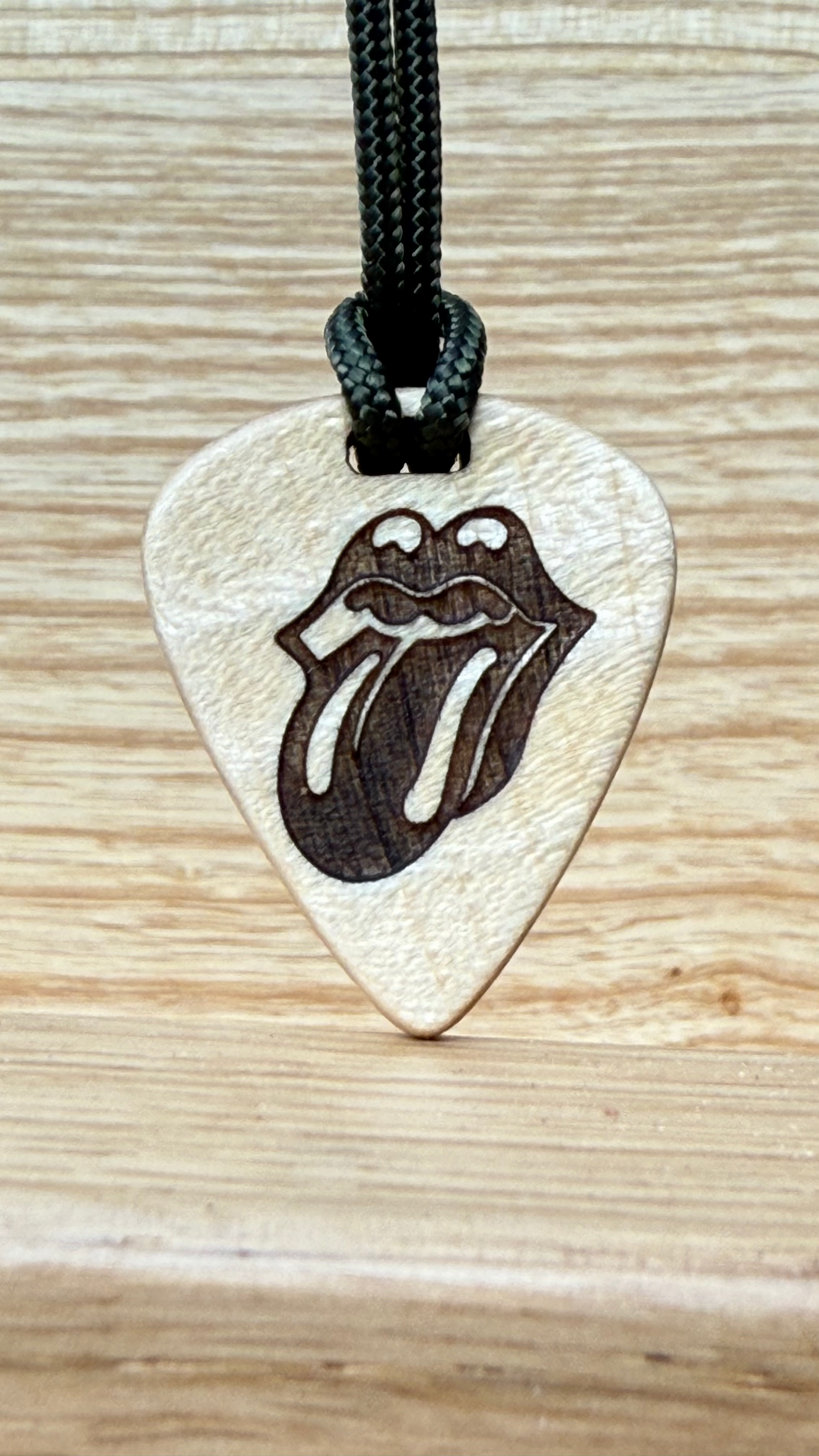 Ciondolo a forma di plettro inciso con la celebre "tongue & lips" dei Rolling Stones.