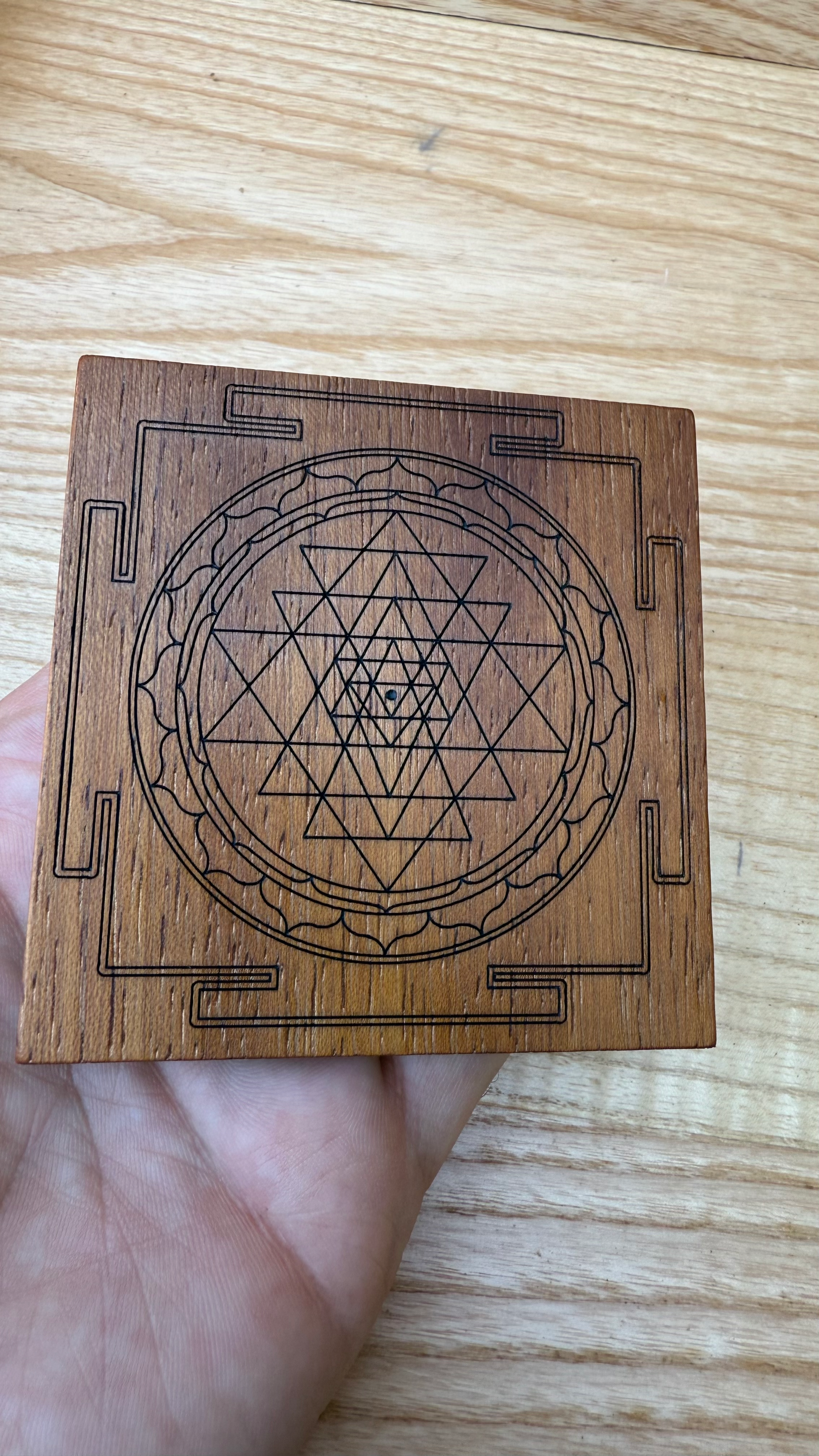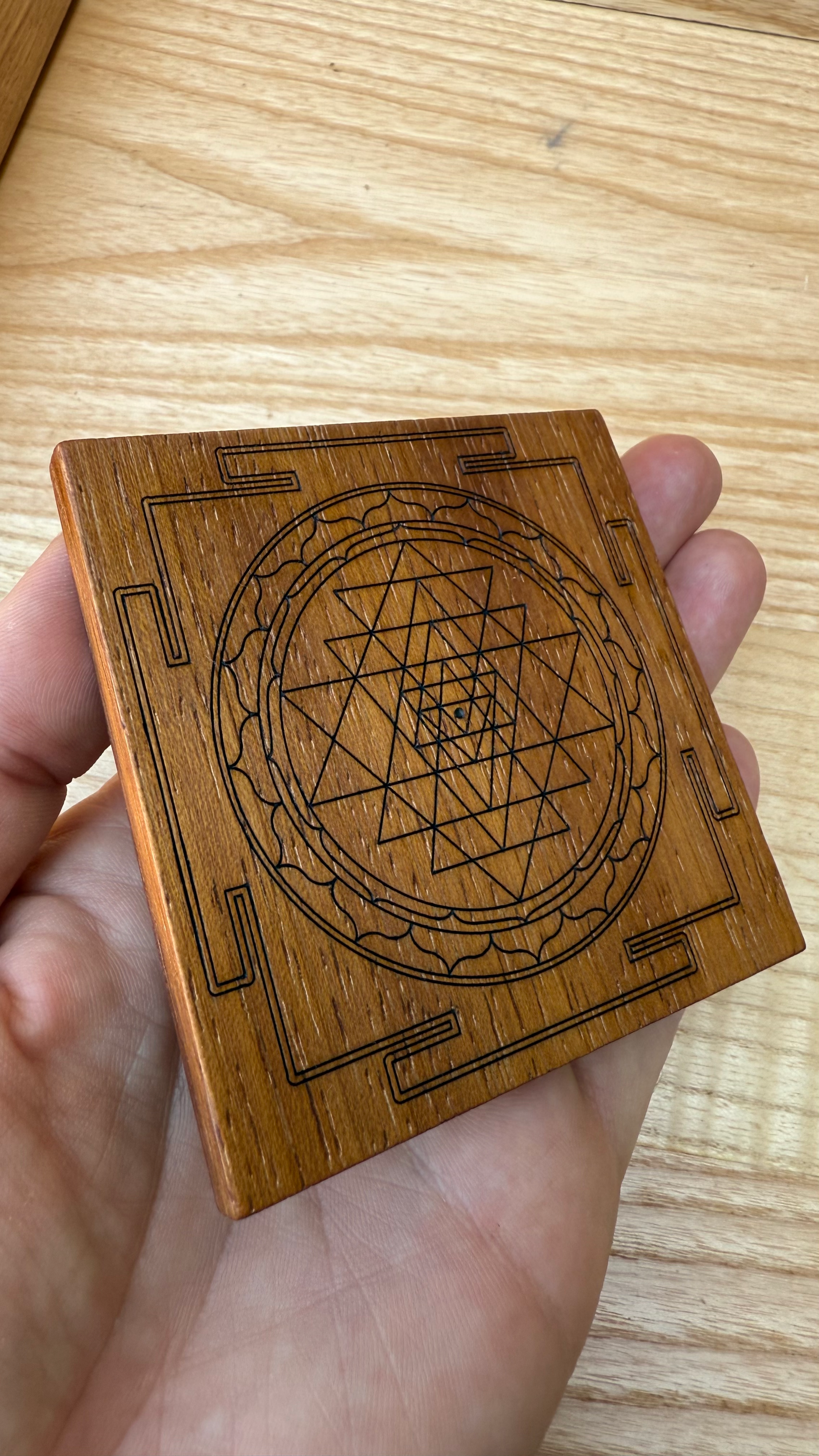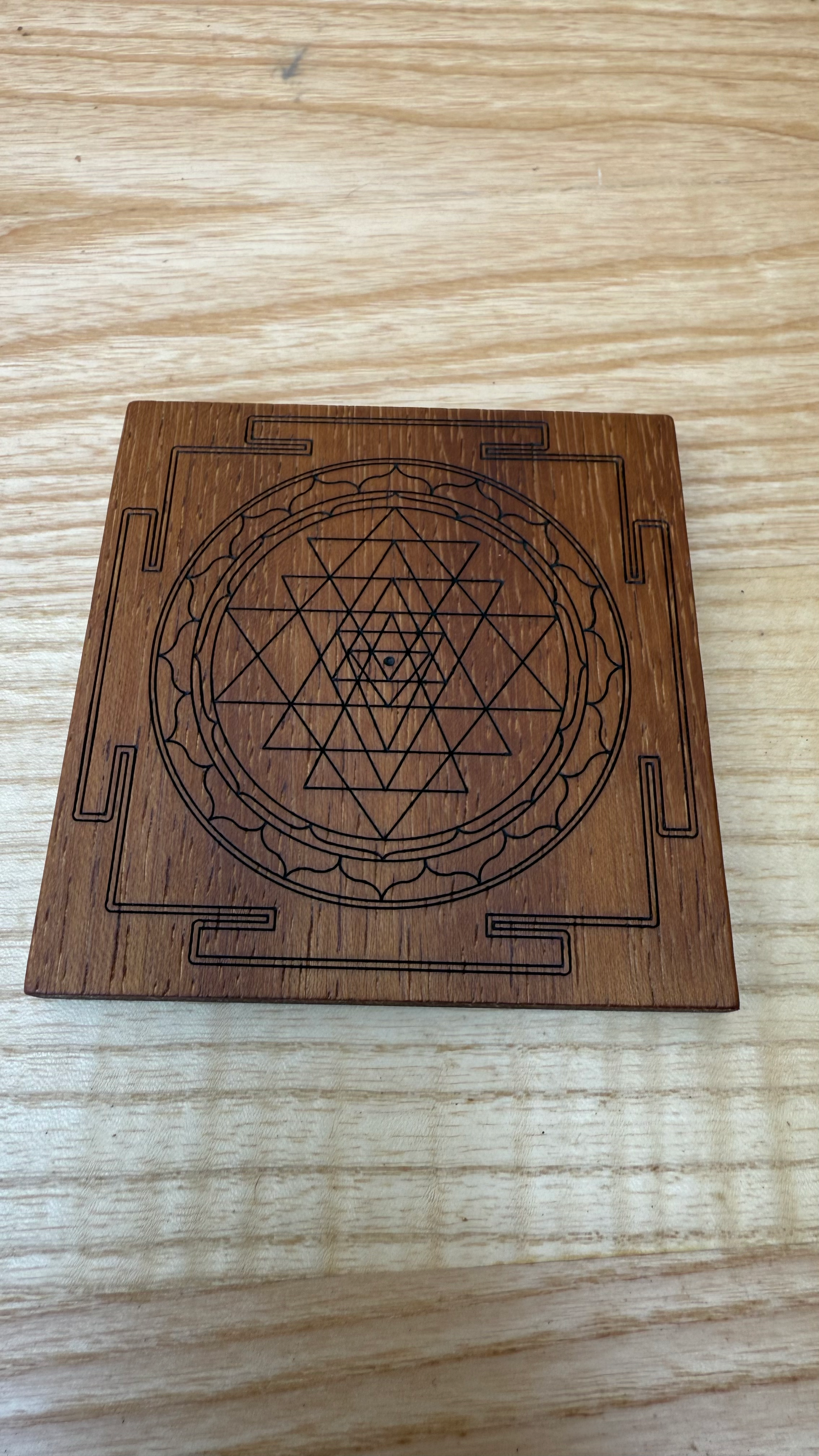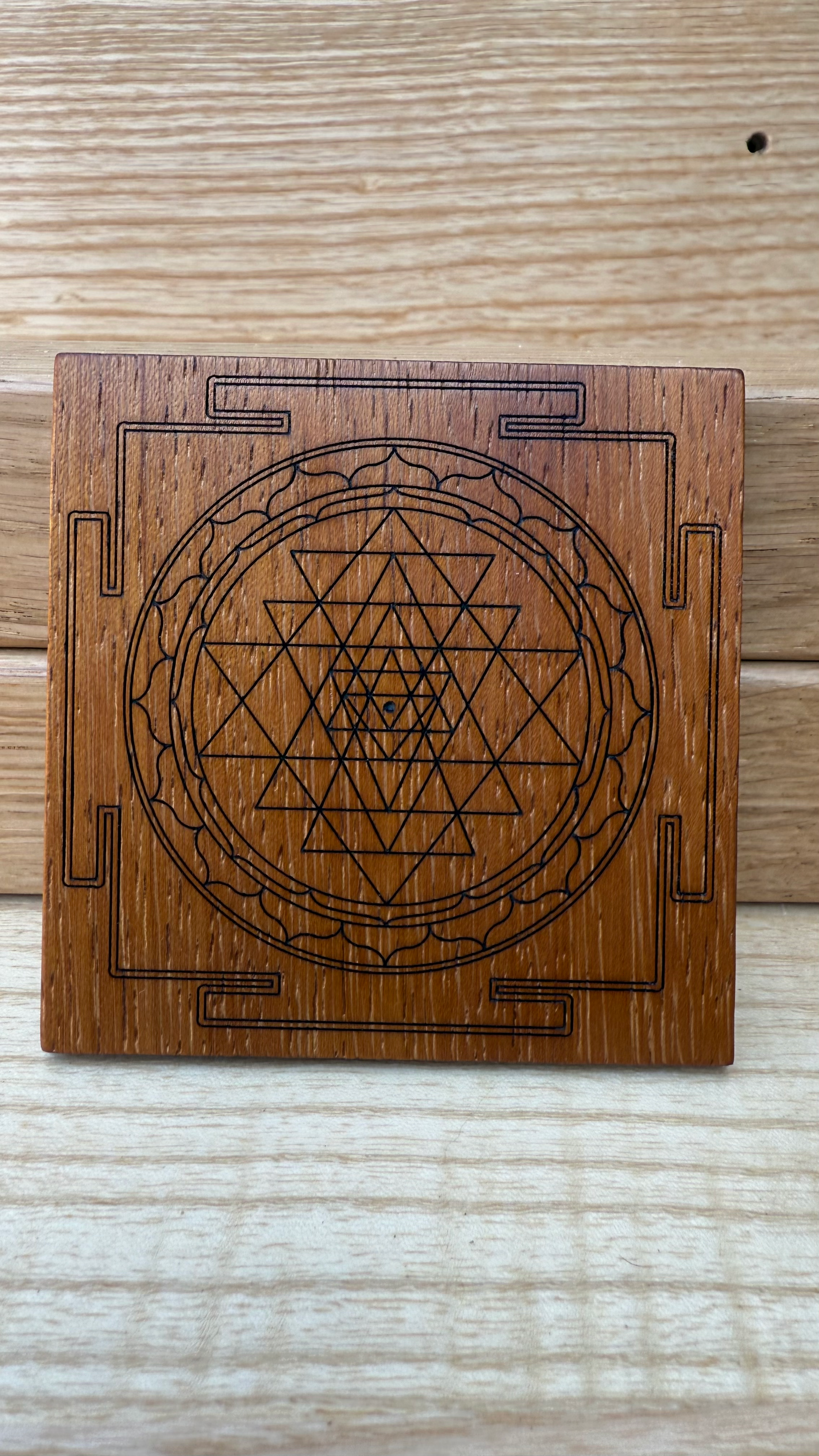 Sri Yantra su legno di Iroko – Tavoletta 9x9 cm per Yoga e Meditazione